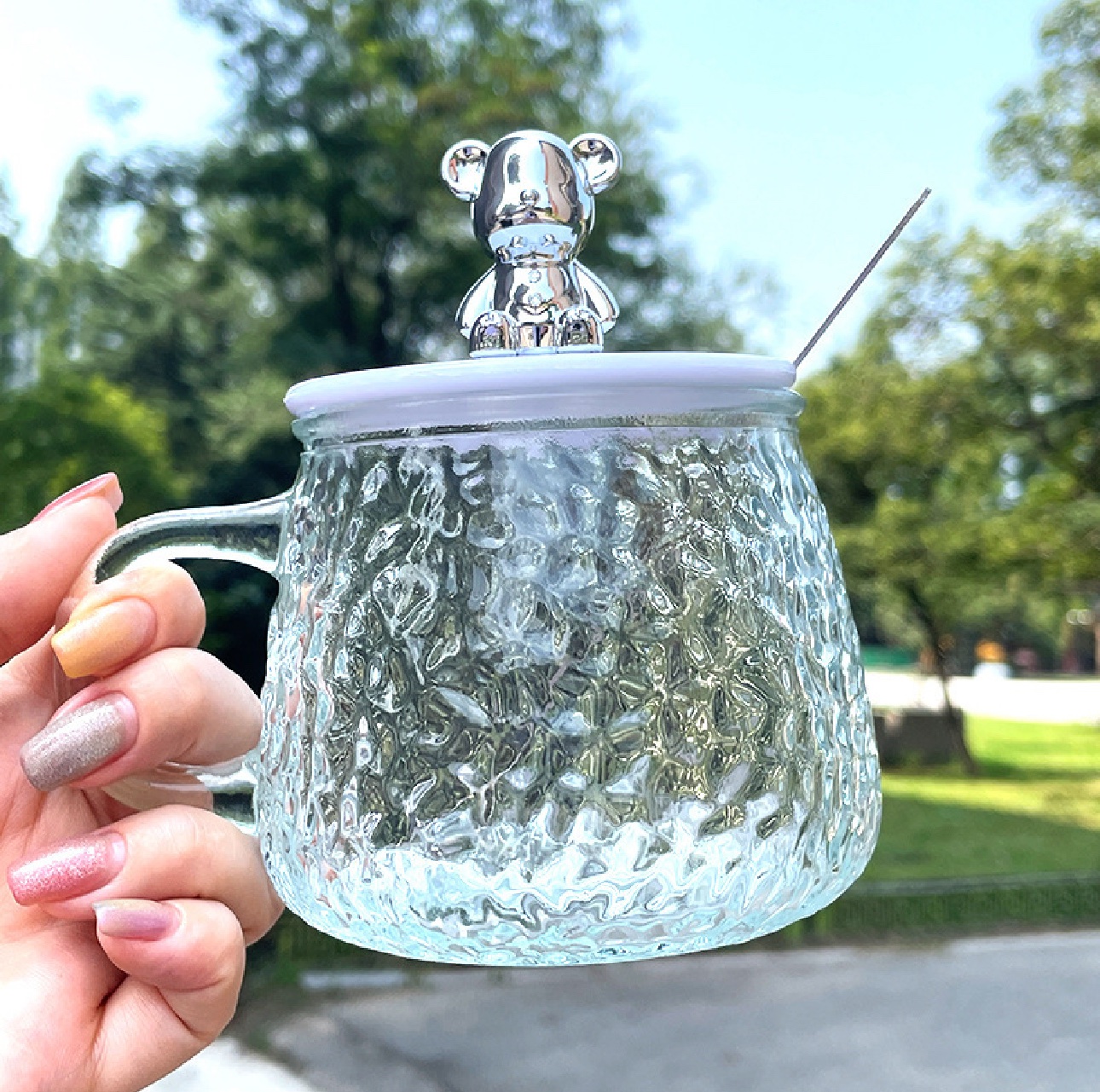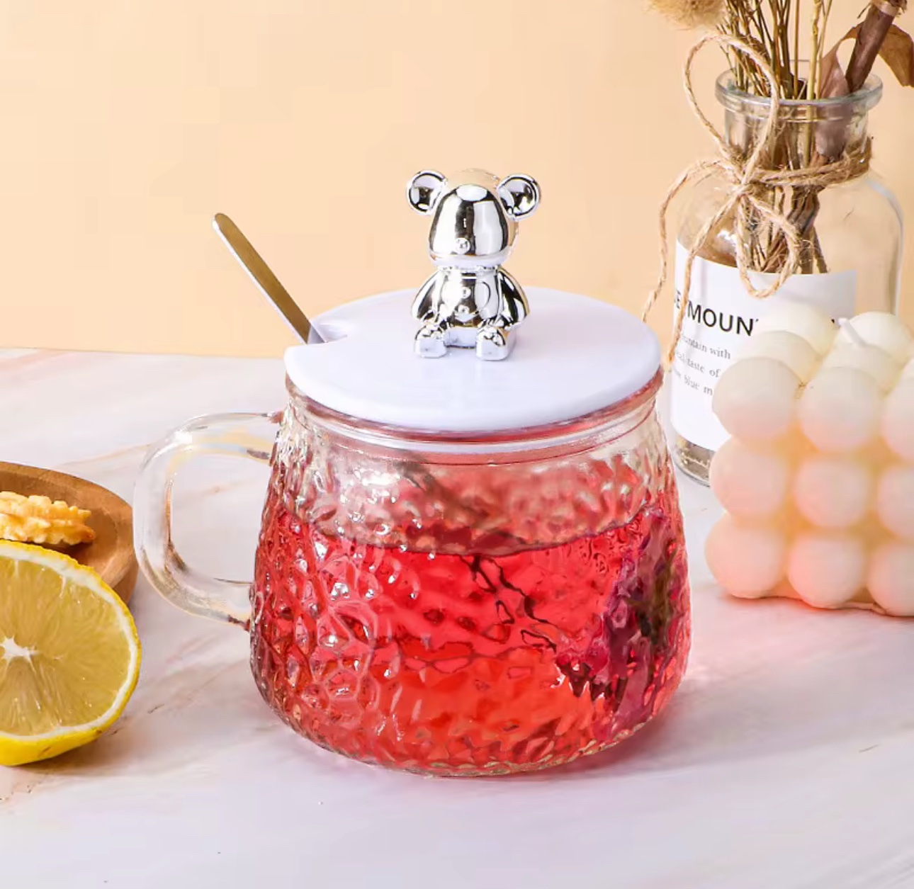 Glass coffee cup with spoon gift
